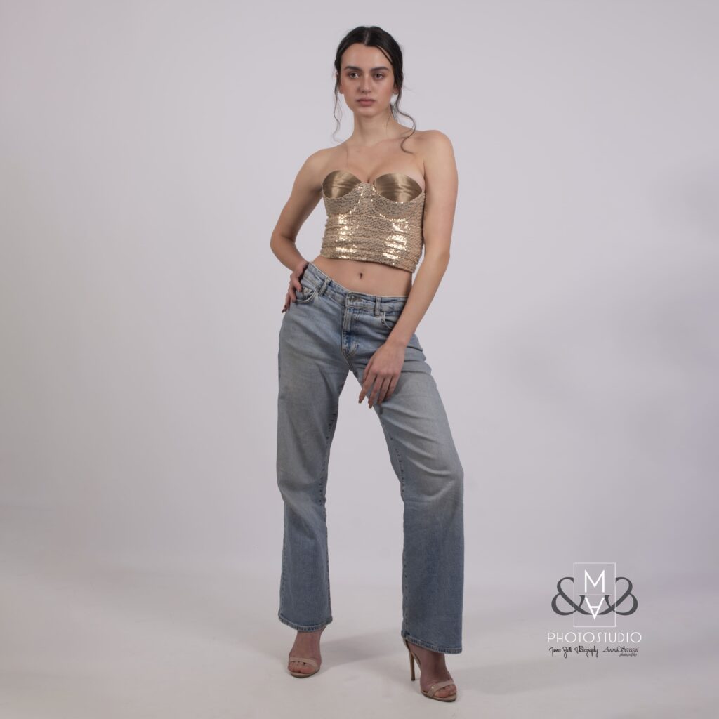 This editorial shoot presents Unframed Gold, removing the Framed Gold corset from its studio setting. It is adapted for daily wear through reduction.